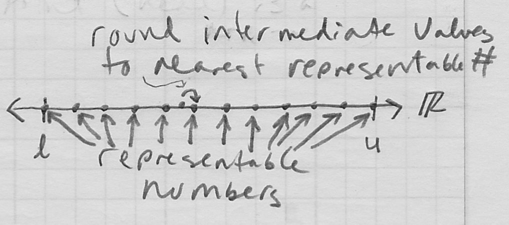 - Often no indication or error when an intermediate result has become infinity or NaN.