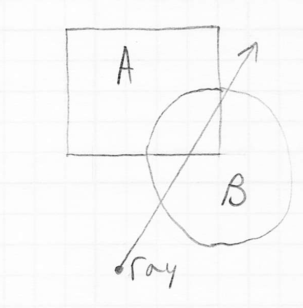 - consider a ray that hits a pair of solid objects
